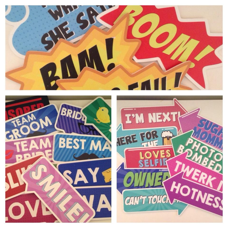 Sample images featuring deluxe mustache/glasses on a stick and fun sign Props